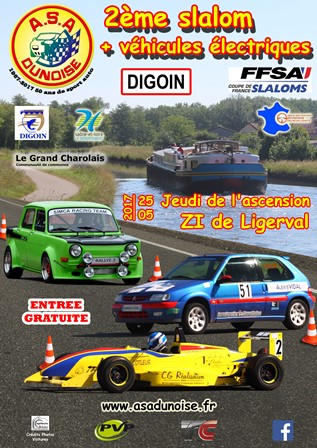 Slalom 2017Slalom Digoin 2017 : Résultats : Classement de la manche N° 1 Classement de la manche N° 2 Classement de la manche N° 3 Classement de la manche N° 4 Classement Définitif par classes Classement final par groupes Classement final définitif Engagements 2017 : Liste des engagés numérotée au 24/05/2017 Réglement Feuille engagement (Format PDF) Feuille engagement (Format Word remplissable) Plan du circuit Plan général Téléchargement d'Adobe Reader (nécessaire pour lire les fichiers)